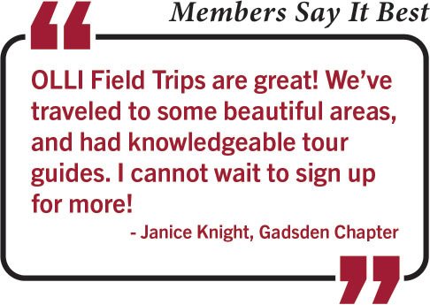 Members may participate in trips from any of the chapters  TUSCALOOSA – GREATER BIRMINGHAM  – GADSDEN