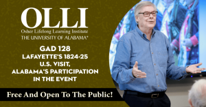 We are celebrating the 250th anniversary of the Revolution! Similarly, in 1825, Americans celebrated the 50th anniversary. The return visit to the U.S. by Marquis de Lafayette, the last surviving major general of the War of Independence, was one of the most celebrated events of the 19th century. Join us as a Revolutionary War veteran talks about Lafayette's travels across Alabama and its significance to us.
